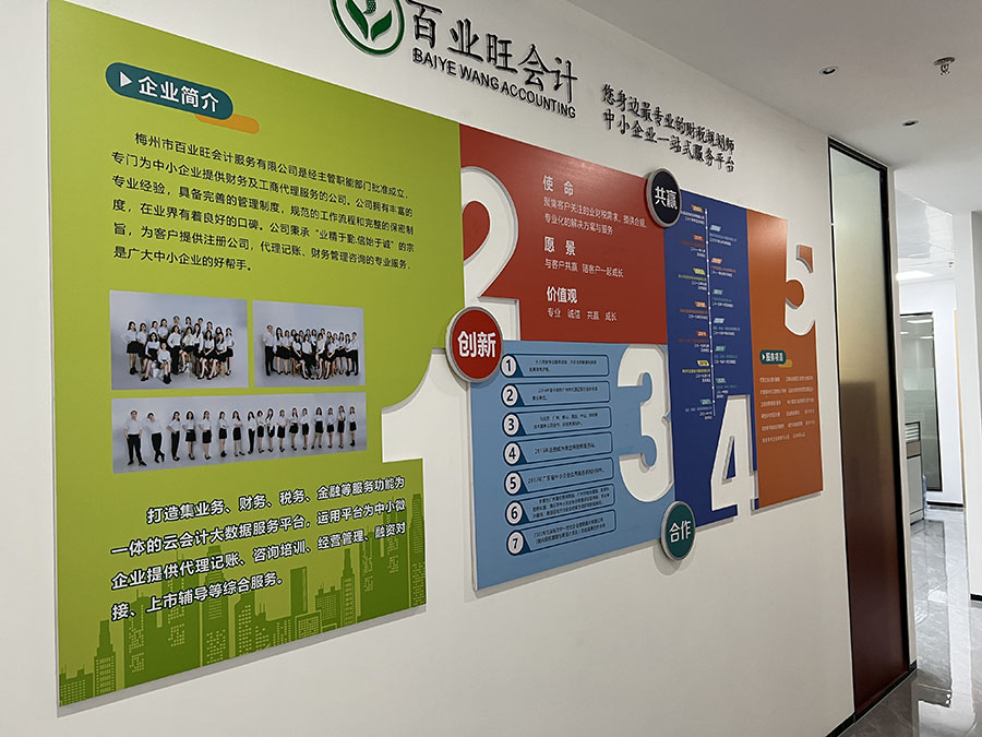 梅州市百業旺會計服務有限公司是經主管職能部門批準成立,專門為中小企業提供財務及工商代理服務的公司。公司擁有豐富的專業經驗,具備完善的管理制度,規范的工作流程和完整的保密制度,在業界有著良好的口碑。公司秉承“業精于勤 信始于誠”的宗旨, 為客戶提供注冊公司,代理記帳、財務管理咨詢的專業服務,是廣大中小企業的好幫手。